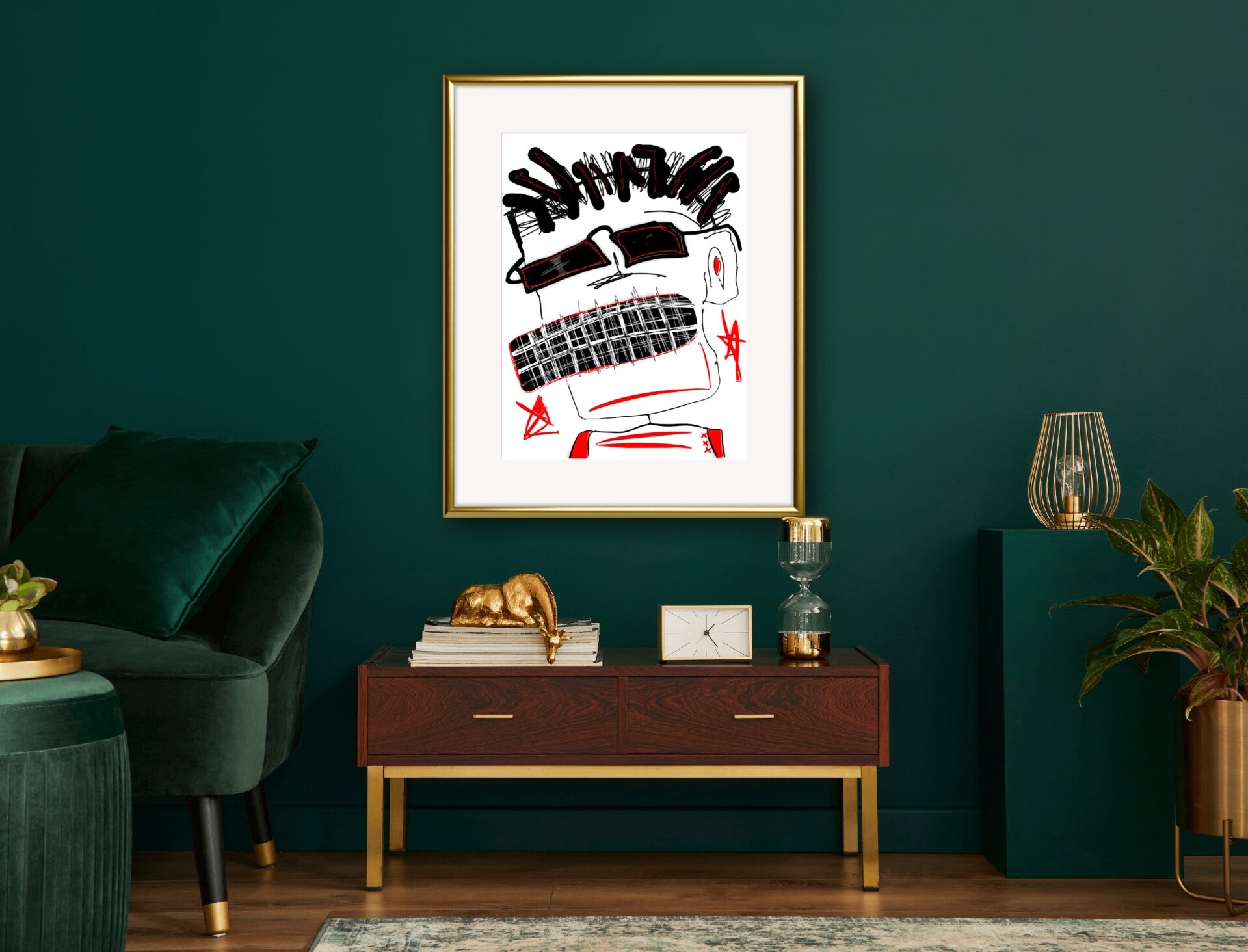 De tekening van de man met de zwarte zonnebril symboliseert de verborgen en duistere kanten van de menselijke psyche. "De Schaduw" verwijst naar de schaduwzijde van de menselijke persoonlijkheid, en suggereert dat het omarmen van deze schaduwzijde ons kan helpen ons volledige potentieel te bereiken en onszelf beter te begrijpen. Laten we ons laten inspireren door deze tekening en de schaduw omarmen om ons ware zelf te ontdekken.