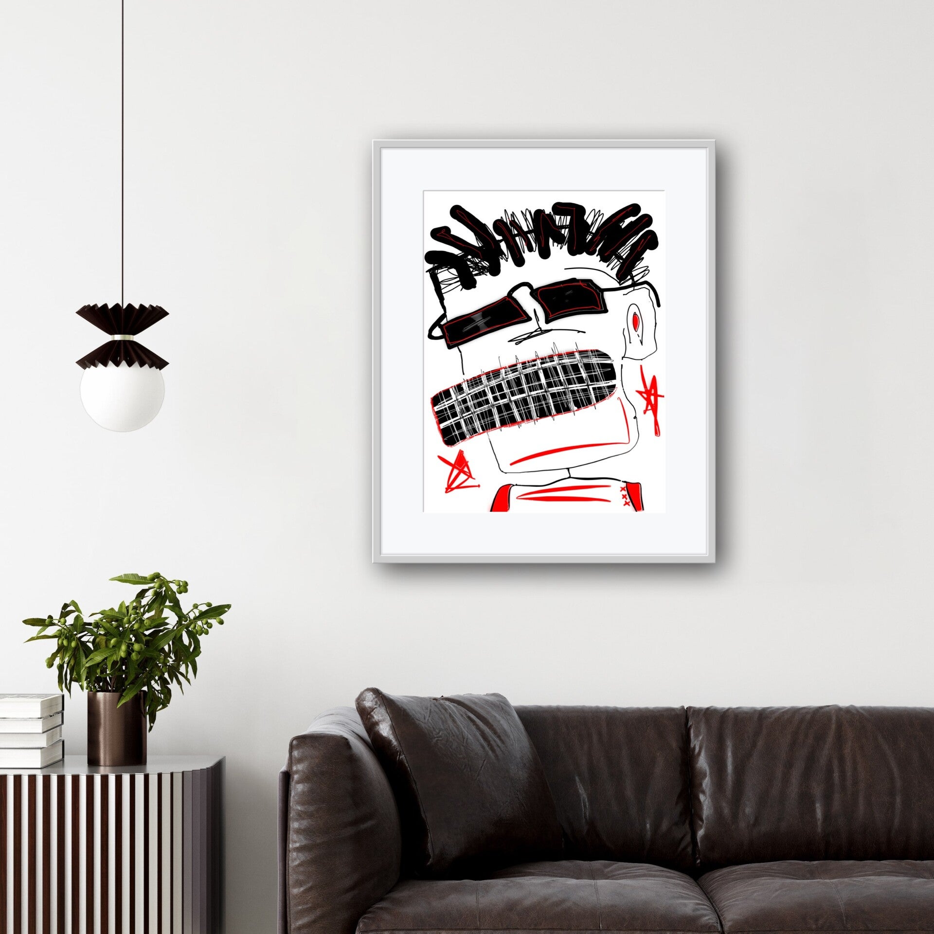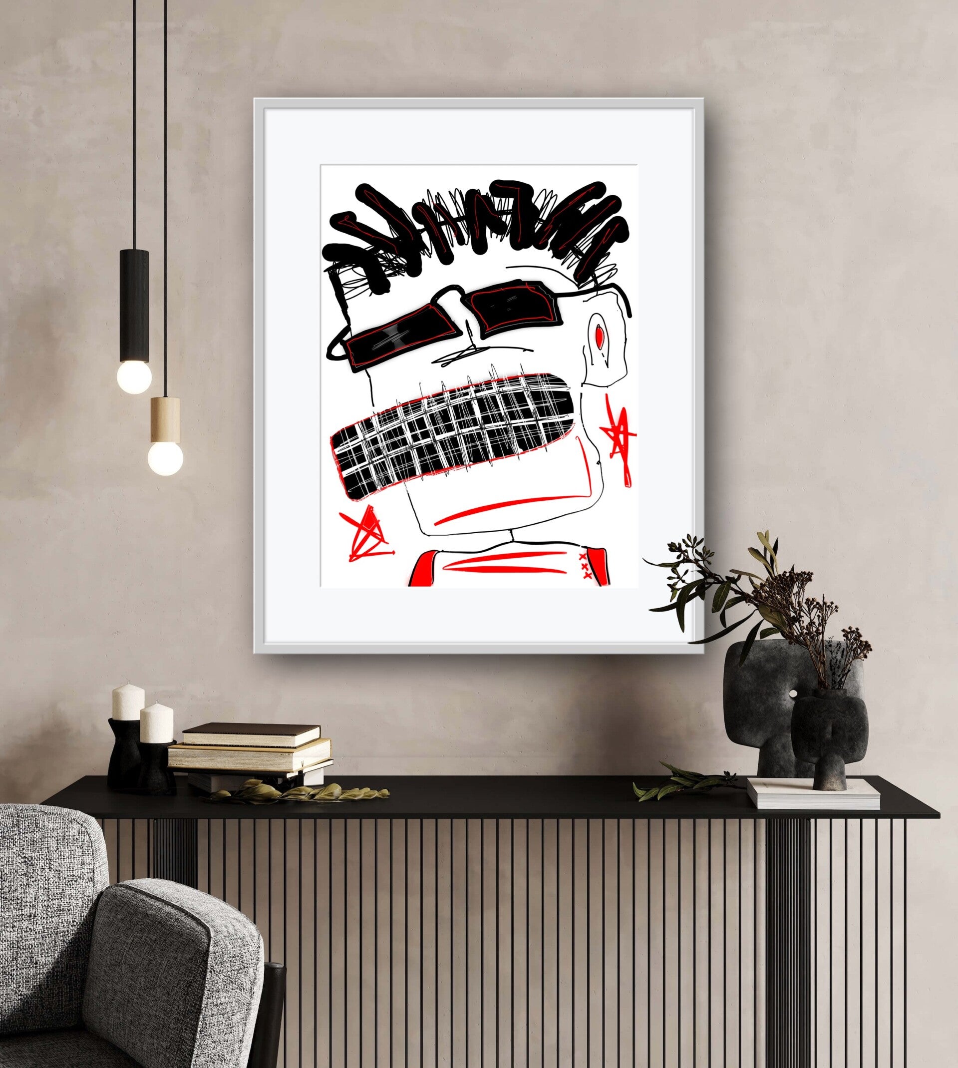 The drawing of the man with the black sunglasses symbolizes the hidden and dark sides of the human psyche. "The Shadow" refers to the shadow side of the human personality, and suggests that embracing this shadow side can help us reach our full potential and better understand ourselves. Let us be inspired by this drawing and embrace the shadow to discover our true selves.